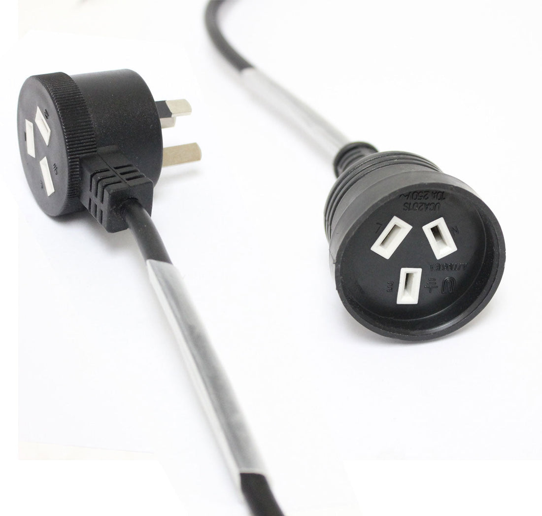 DL 2 Meters Black Piggyback Plug Main Power Extension Cord 240V 3 Pin 10A 1.0mm Cable