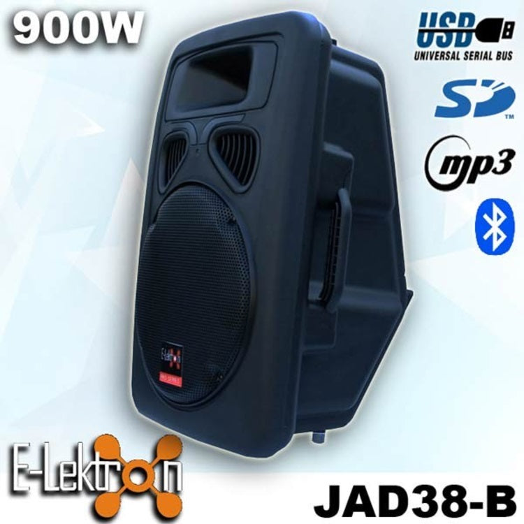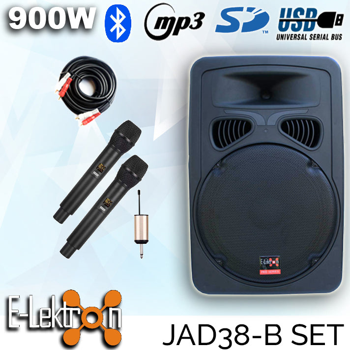 The E-lektron JAD38U2 is a karaoke PA sound system pack come with one 900W 15inch active speaker and 2 tuneable UHF wireless microphone. It is specially designed for home and small party karaoke.