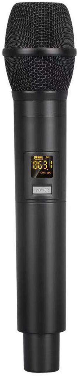Microphone set with 2 high-quality UHF wireless microphones and plug-on receiver that can be connected directly to the mixer, amplifier or sound system. The receiver is equipped with a rechargeable battery and can thus operate independently of the mains for up to 4 hours.