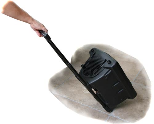 - Sturdy ABS plastic housing with handle and wheels, also for outside