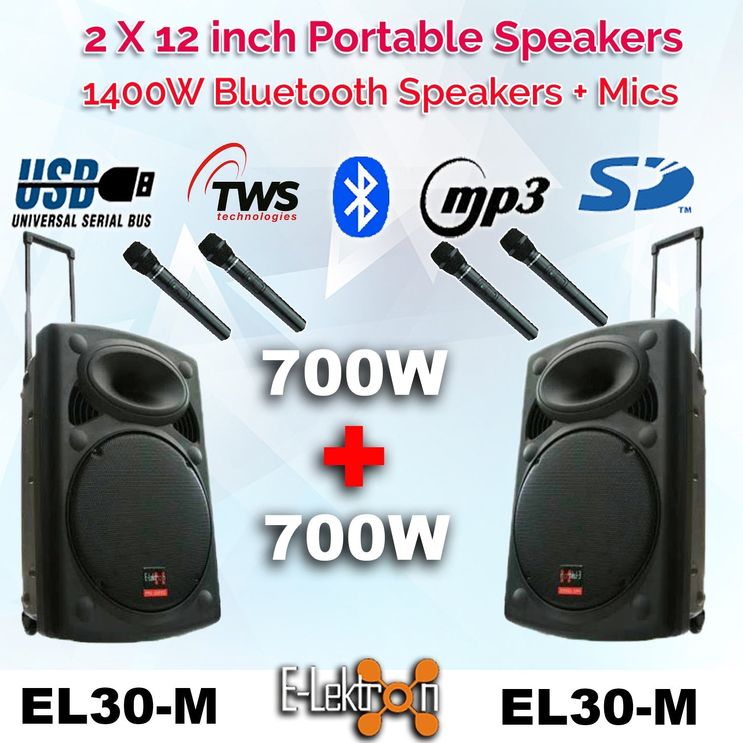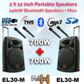 E-Lektron EL30-M Set 2X12" inch TWS Linkable Bluetooth 5.0 Portable 1400W Powerful PA Speakers Sound System