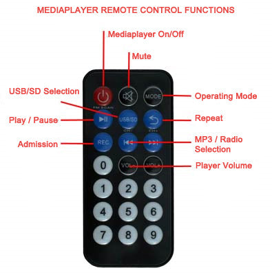 - Incl. Remote control for MP3 functions, MP3 player with RECORD function