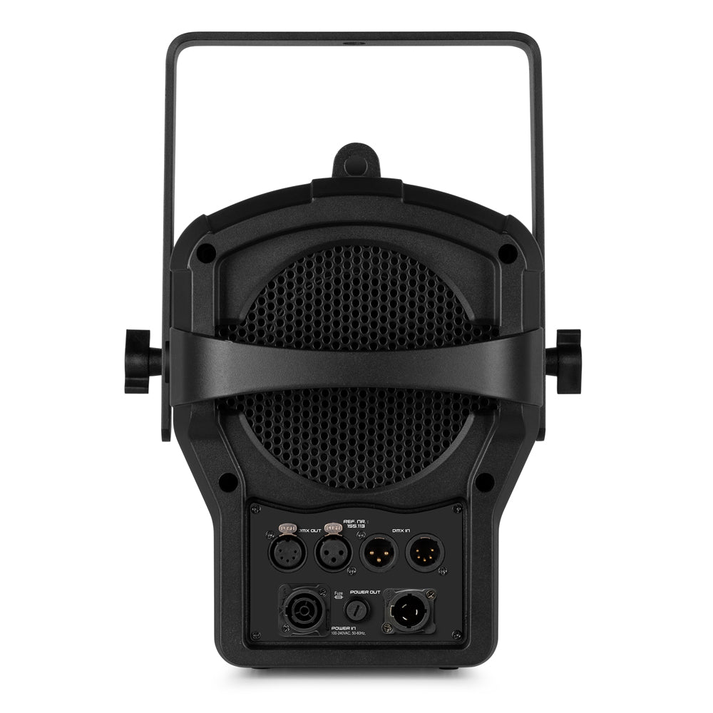 The BeamZ BTM250WW Fresnel Zoom uses a high-power single-source LED engine to provide a smooth and even field of warm white light, providing a modern replacement for traditional fresnels. The BTM250WW is equipped with high-quality optics, a motorised 15-55 degree zoom function and is both dimmable and able to be operated as a strobe up to 25 flashes per second. Ideal for use in theatres, studios, museums, exhibitions or any stage setting that requires smooth warm white output from an energy-saving fixture with exceptionally long life. Fittend with a TR in & out power connector and both 3 & 5-pin DMX for increase versatility.