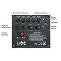 - Integrated mixer amplifier, MP3 player, FM radio, Bluetooth, and wireless microphone