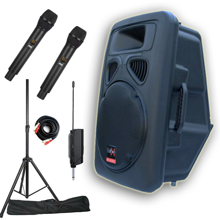 E-lektron 12" inch Speaker Set 800W Bluetooth Active Powered Loud Digital Sound System PA with 2 Tunable UHF Wireless Microphones and Stand