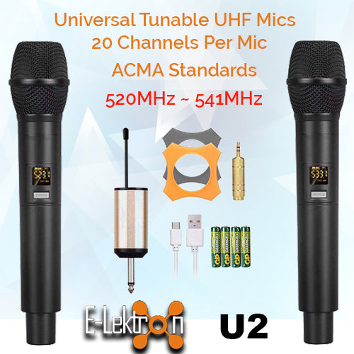 - Transmission Frequencies: UHF 520.0 - 541.0 MHz, Per microphone each 20 transmission frequencies available
