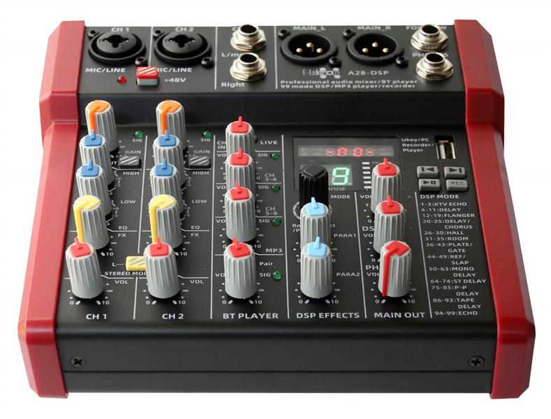 E-lektron A28 DSP FX Studio Audio Mixer 6-Channel with Bluetooth USB Play Audio interface