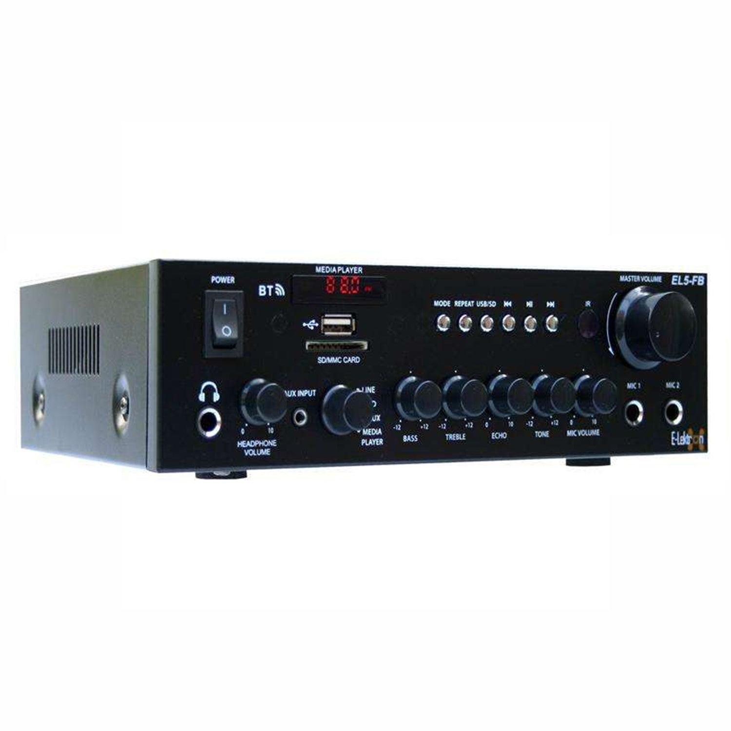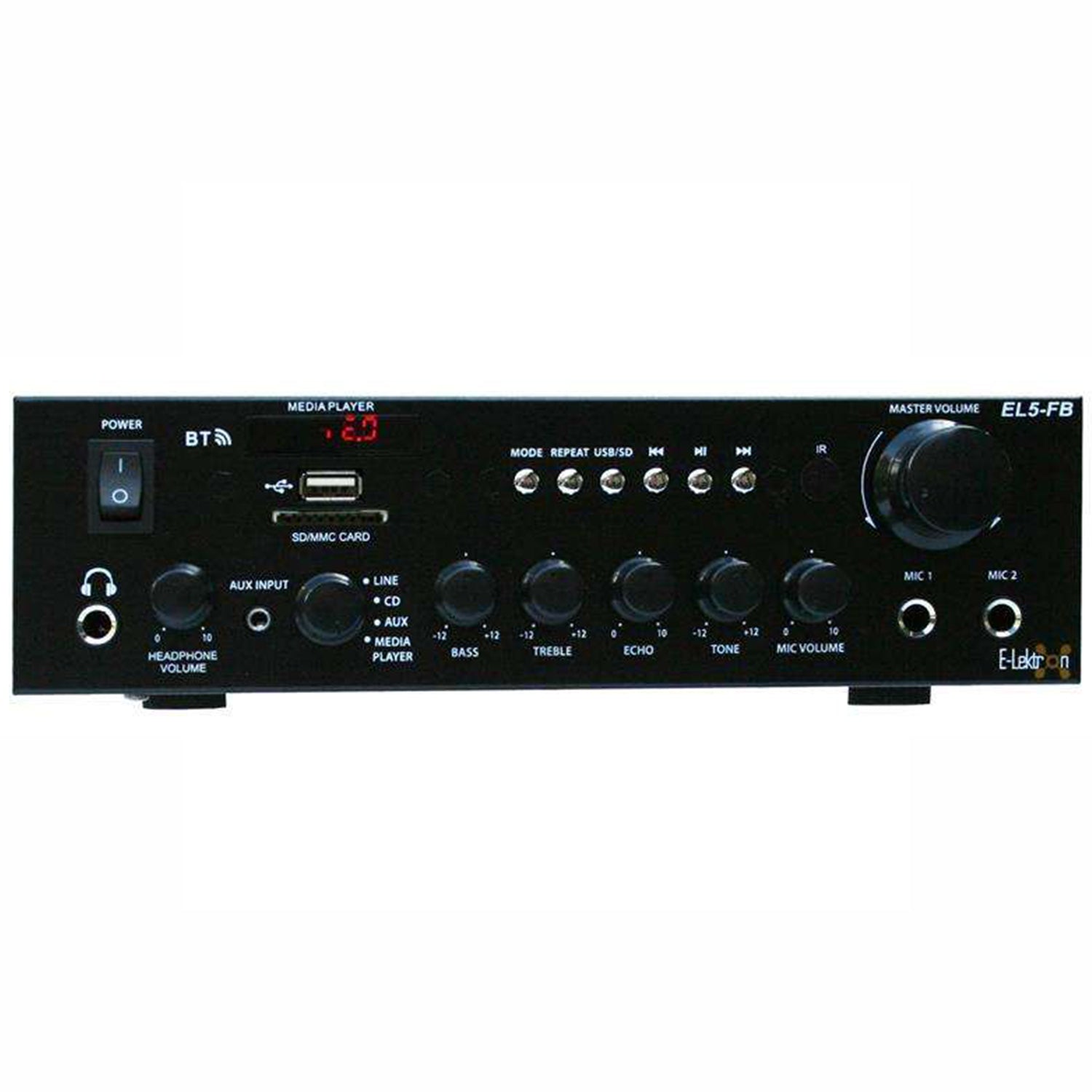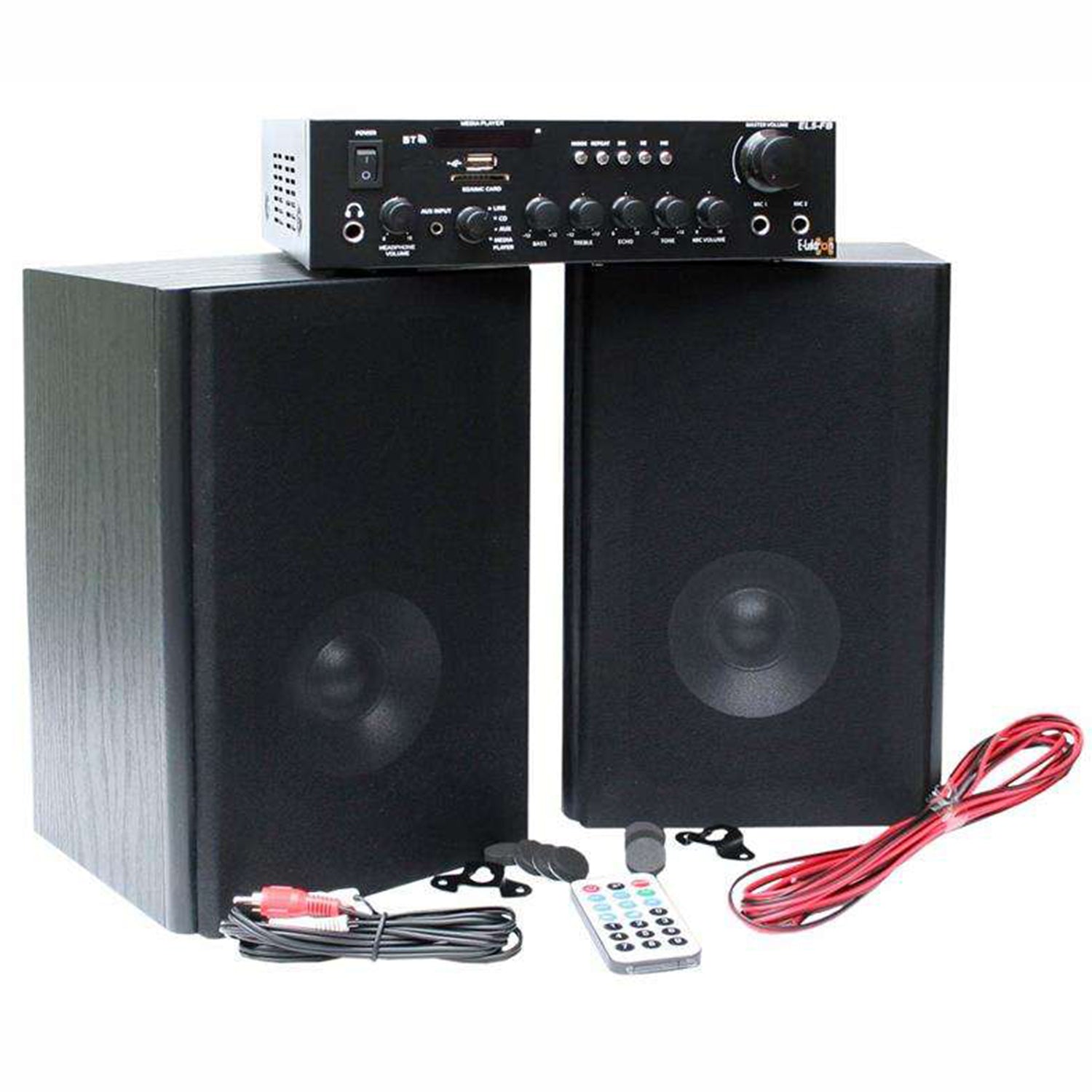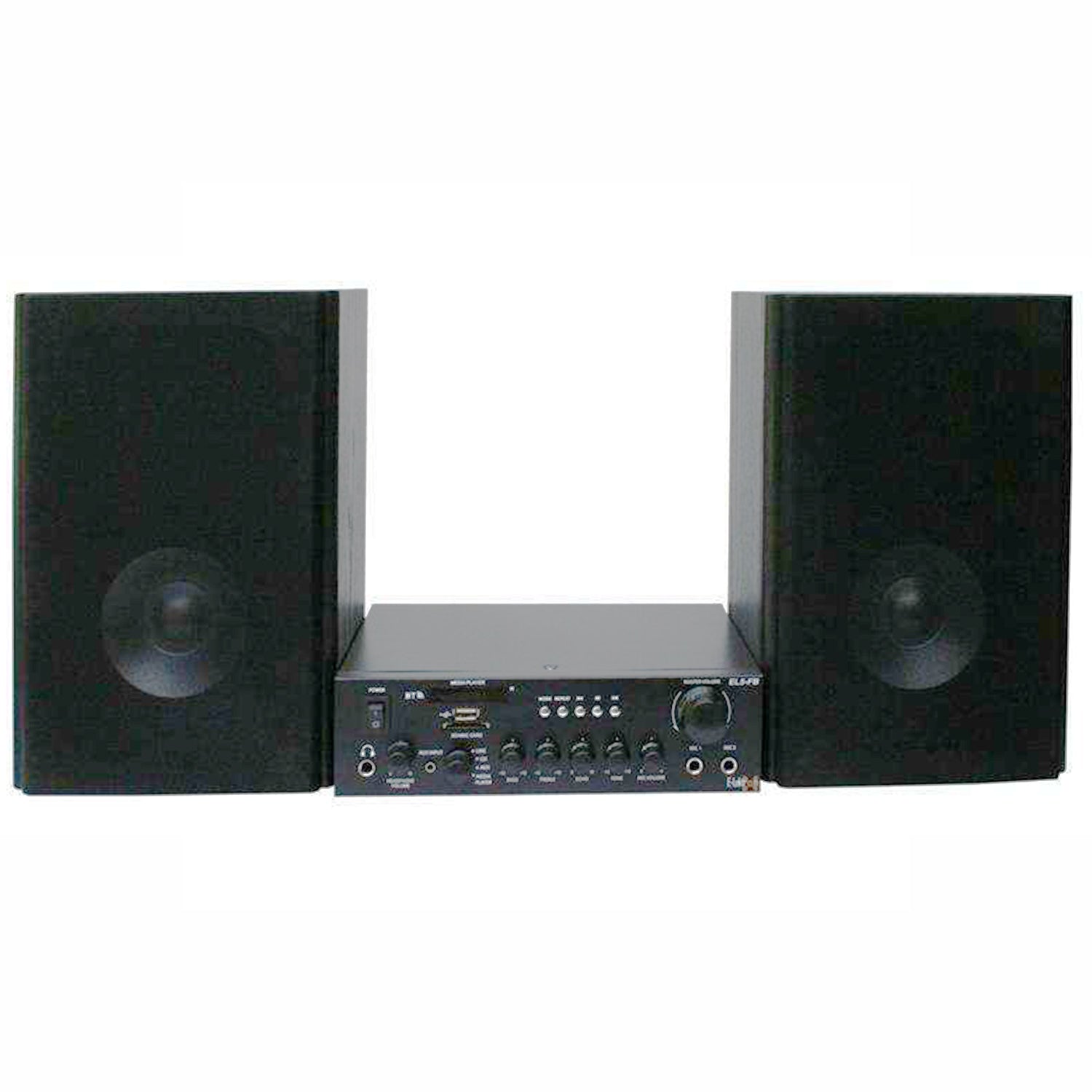 - E-Lektron bookshelf Monitor speakers set with EL5-FB stereo amplifier & BK55 wooden HiFi monitor speakers. The set is characterized by great sound fidelity and many possible uses.
