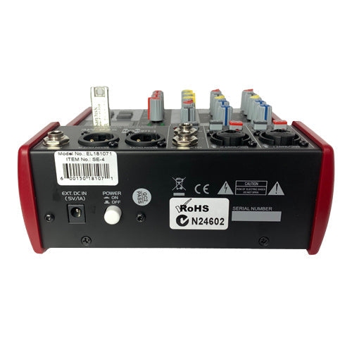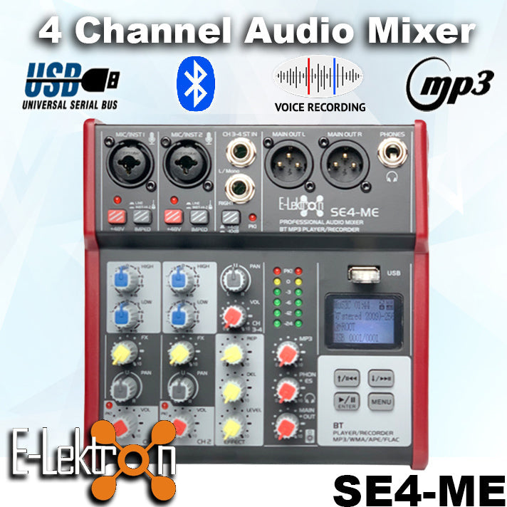 E-Lektron SE-4 Live Audio Mixer 4 Channel Mixer incl. USB Bluetooth Soundcard Phantom Power