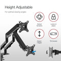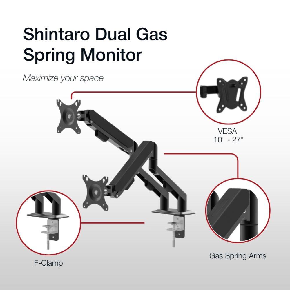 Shintaro Dual Monitor Mount for Up to 27" Screen, Gas Spring Arms, F-Clamp & Bolt, Tilt, 9kgs Max Load Weight
